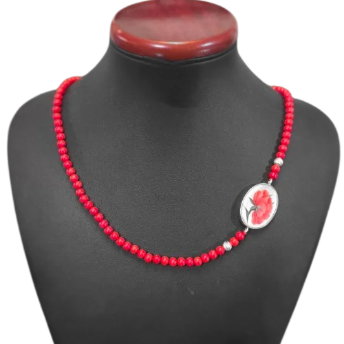 Discover the unique beauty of the Natural Coral Necklace with Silver Beads by Persian Crafts. This elegant necklace features genuine coral stones combined with delicate silver beads. The centerpiece showcases exquisite hand-painted artwork on a natural shell. The shell is framed with finely crafted silver, adding a touch of sophistication. Each piece reflects traditional Iranian artistry and craftsmanship. Persian Crafts ensures every necklace is made with care and attention to detail. This necklace fits perfectly for those who appreciate authentic, handmade jewelry. It also makes a thoughtful gift for special occasions. Choose Persian Crafts for a timeless accessory that highlights natural materials and cultural heritage.