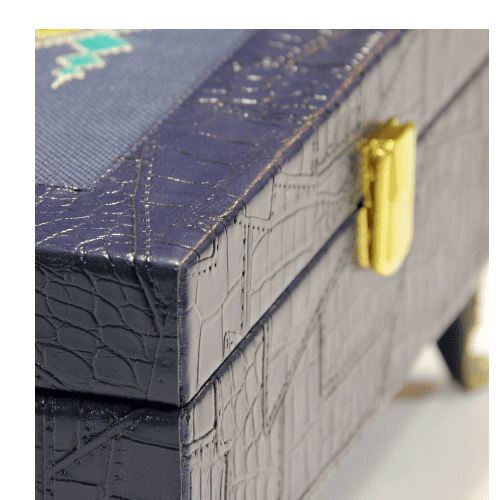 The Semi-Industrial Leather Packaging by Persian Crafts brings elegance and durability together. It is crafted from lightweight and resistant industrial leather. Each box is handmade and decorated with authentic Baluchi needlework. With over 30 available colors, this packaging suits both modern and traditional tastes. Its versatile design makes it perfect for saffron, barberry, dried fruits, herbal teas, unique crafts, and thoughtful gifts.
