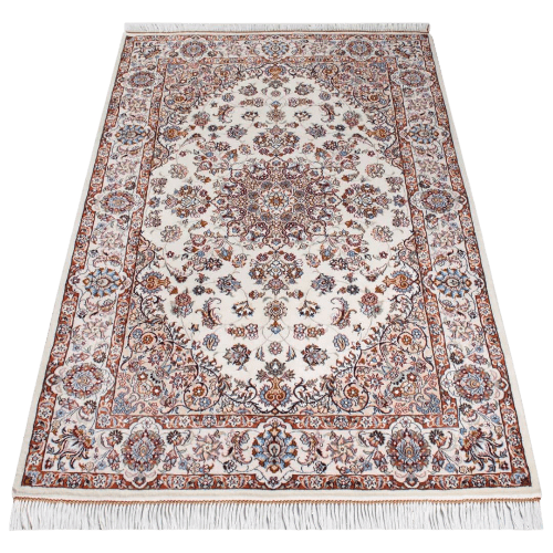 • Handwoven carpets combining silk and natural wool from Kurdistan.